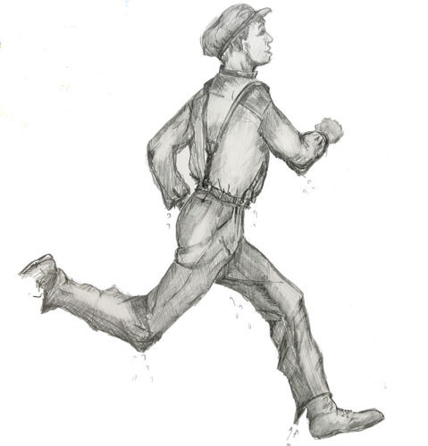Osbakken, tok beina fatt. Mens vannet plaska i lommene, småløp jeg